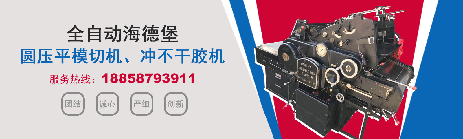瑞安市恒柯機械廠(www.wzhkjx_com.pbfzpjl.cn)是國內專業制造銷售全自動模切機,全自動燙金機,圓壓平模切機,圓壓平燙金機,滾筒燙金機,沖不干膠機,海德堡凸印機.銷售的產品系列規格齊全,產品具有速度快,壓力均勻,套印準確等特點。